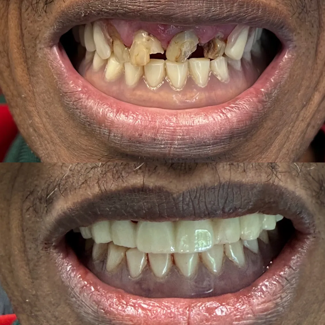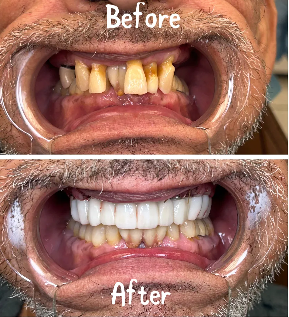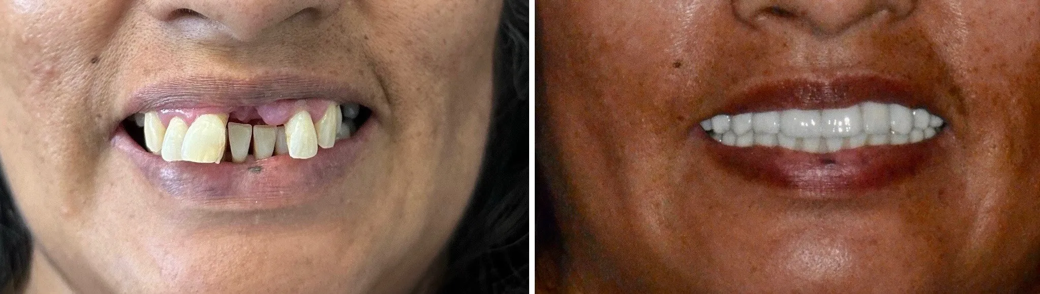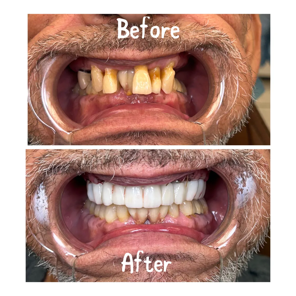 All-on-4® is a minimally invasive method of placing a full mouth of dental implants, using only four implants to support a full arch (upper or lower) of fixed, non-removable replacement teeth. All-on-4® allows you to have a full set of teeth without having to undergo multiple surgeries and replacements to place a full set of implants in your mouth. The greatest thing about All-on-4® is that the procedure we can typically complete it in our office during one appointment under local anesthesia. For our patients who have lost all their teeth or may need to have the remaining teeth pulled due to decay, this is an amazing advancement that allows them to have a full set of teeth without undergoing multiple procedures. Simultaneously, this solution gives patients the kind of teeth that look real and act like the original teeth.